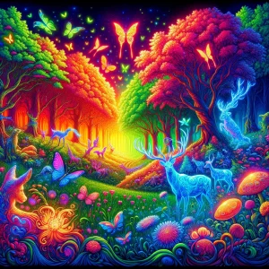 DALL·E 2024-02-03 20.13.56 – Imagine a scene embodying the integration of psychedelic experiences into the natural world, depicted in a style that marries Magical Nature with neon